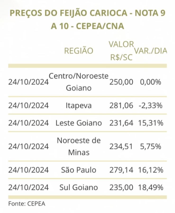 Ontem no final da tarde foram reportados negócios ao IBRAFE aponta da ligeira elevação nos preços do Feijão-carioca que correspondem na média a apurada pelo no INDICE FEIJÃO CEPEA.