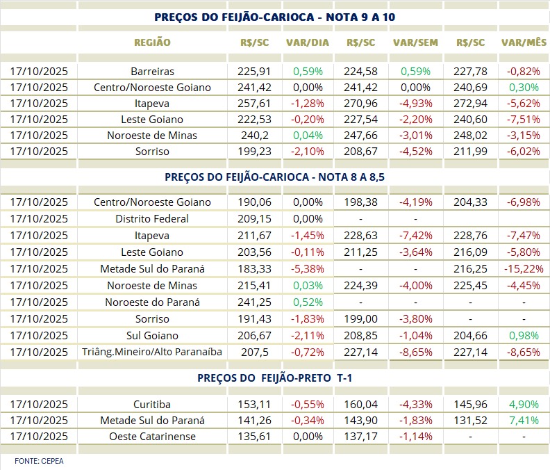 Em dólares, o movimento é bem menor — alta de 31,8% no período —, sinal de que a pressão sobre o consumidor é majoritariamente doméstica: inflação de alimentos, câmbio e custos internos, e não um encarecimento global do Feijão.