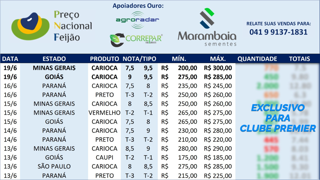 Negócios Reportados - PNF Preço Nacional do Feijão - IBRAFE