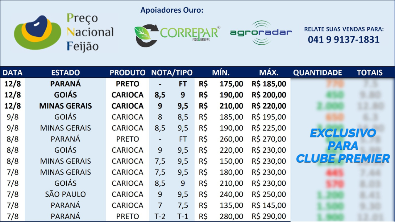 Negócios Reportados - PNF Preço Nacional do Feijão - IBRAFE